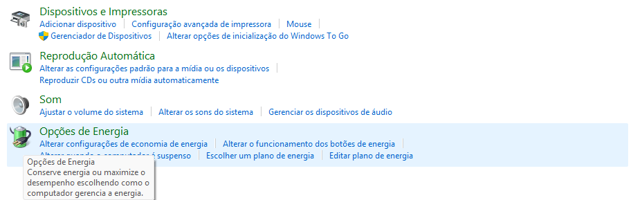 - Clique no link “Opções de Energia”.